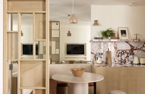 An exquisite sanctuary in the city’s prestigious 8th arrondissement, Élysée Collection V welcomes up to four guests. From this desirable location, the dazzling Parisian lifestyle beckons, from dining at Michelin-starred restaurants to browsing the latest collections from lauded French fashion designers. The sweeping Place de la Concorde, a short walk from the apartment, is the ideal spot to sip your morning coffee before heading off on an odyssey through the City of Light. From this picturesque square, you can head southeast into the captivating Jardin des Tuileries, strolling through the fragrant gardens, before wandering across to the Louvre. Or head northwest to immerse yourself in the haute couture of the Champs-Élysées, before ducking into one of the avenue’s famous lunch spots. Élysée Collection V offers a quiet retreat from the thrum of the capital. The open-plan living space retains a sense of warmth and intimacy with its earthy colour palette, rich textures, and soft ambient lighting. Get inspired by your culinary adventures in the marble-accented kitchen, while you relax on the plush sofa and watch a movie until supper is ready. There’s a cosy dining nook in the kitchen with a cushioned bench, just right for unhurried meals over a bottle of wine. The home’s beautifully presented bedroom offers ample wardrobe space for all your new purchases, along with a floor-to-ceiling mirror to let you admire them. Climb into the sumptuous king-size bed, where a statement headboard offers bespoke lighting for reading sessions before you drift off to sleep. The bathroom features a spa-style design with bold marble accents, including twin vanity sinks and a waterfall shower. Two further guests can be accommodated on a comfortable sofa bed in the living room, making Élysée Collection V the perfect choice for small families. Though there is a wealth of cultural attractions and boutique shopping on your doorstep, you can also explore the rest of the city with ease, thanks to the Miromesnil Metro station being just moments away.