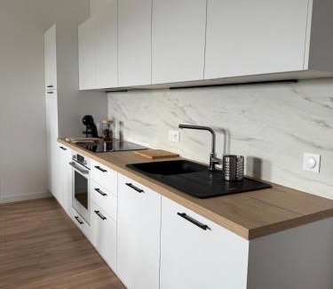 Ô Vignes & Bastides " L'échappée Lapébie ", appartement cosy is a recently renovated apartment in Sauveterre-de-Guyenne where guests can make the most of the garden and barbecue facilities. This apartment provides free private parking, luggage storage space, and free Wifi. Chaban Delmas Bridge is 30 miles away and La Cite du Vin is 31 miles from the apartment. Providing a terrace with garden views, this apartment also provides guests with a flat-screen TV, a well-equipped kitchen with a dishwasher, an oven, and a microwave, as well as 1 bathroom with a walk-in shower and a hair dryer. The property has an outdoor dining area. Guests at the apartment will be able to enjoy activities in and around Sauveterre-de-Guyenne, like cycling. Stone Bridge is 31 miles from ô Vignes & Bastides " L'échappée Lapébie ", appartement cosy. Bergerac Dordogne Périgord Airport is 37 miles away.