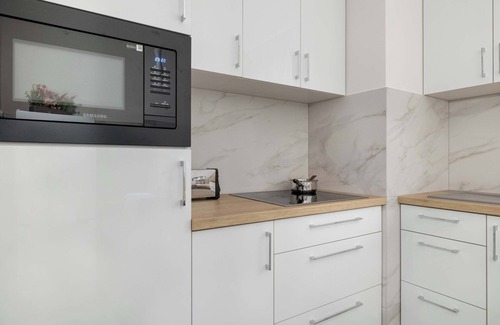 This modern building is located in a quiet and friendly neighborhood, making it a great place to unwind for couples as well as groups of friends, business travelers or parents with children. The property has to offer visitors parking spaces in an underground garage hall. The property is located close to numerous stores, retail outlets, restaurants and cafes. The two nearest stores are located just a three-minute walk from the building. A nearby eatery and bakery can be reached in just five minutes. The property is close to the Tauron Arena, to which the distance can be covered on foot in just twenty minutes, as well as to the nearby Aviators Park. It takes only ten minutes by car to reach the Old Town, where you can admire the magnificent architecture and numerous monuments. The route to the tennis court, the shopping center, the outdoor gym, the park, the swimming pool and the train station, on the other hand, takes only six to eight minutes. Less than half an hour is enough to reach the airport. The place is well connected with the rest of the city - only a few minutes separate the building from numerous bus and streetcar stops.