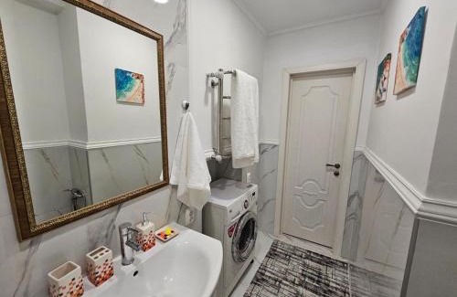 A 2-minute walk from Central State Museum of the Republic of Kazakhstan in Almaty, Апартамент 2 provides accommodations with access to a public bath. This apartment features free private parking, an elevator, and free Wifi. Staff on site can arrange a shuttle service. This apartment includes 2 bedrooms, a living room and a flat-screen TV, an equipped kitchen with a dining area, and 2 bathrooms with a bath and a washing machine. Towels and bed linen are offered in the apartment. This apartment is non-smoking and soundproof. For guests with children, the apartment offers outdoor play equipment. If you'd like to discover the area, skiing is possible in the surrounding area, and Апартамент 2 can arrange a car rental service. Popular points of interest near the accommodation include Kazakhstan Independence Monument, Republic Palace, and Abay Opera House. Almaty International Airport is 10 miles from the property, and the property offers a paid airport shuttle service.