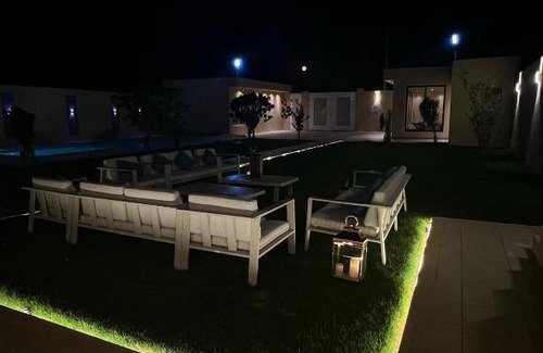 Boasting garden views, استراحة مشكاة offers accommodation with an outdoor swimming pool, a terrace and a bar, around 47 km from Riyadh Park. This chalet has a private pool, a garden and free private parking. The air-conditioned chalet is composed of 2 separate bedrooms, a living room, a fully equipped kitchen with a minibar, and 2 bathrooms. A flat-screen TV is offered. Riyadh Gallery Mall is 49 km from the chalet. The nearest airport is King Khalid International Airport, 47 km from استراحة مشكاة.