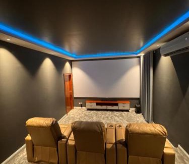 شاليه الرتاج هوم الفندقي is a recently renovated chalet in Ar Rafī‘ah where guests can make the most of its indoor pool, garden, and bar. This property offers a private pool, free Wifi, and free private parking. On clear days, guests can head outside to enjoy the chalet's outdoor fireplace or simply kick back and relax. The air-conditioned chalet consists of 2 bedrooms, a living room, a fully equipped kitchen with an oven and a kettle, and 4 bathrooms with a hot tub and a bath. A flat-screen TV with streaming services is provided. For added privacy, the accommodation has a private entrance and soundproofing. Kids pool is also available for guests at the chalet. Al Montazah Garden Park is 6.7 miles from شاليه الرتاج هوم الفندقي, while Al Iskan Garden Park is 7.7 miles away. Prince Naif bin Abdulaziz International Airport is 12 miles from the property.