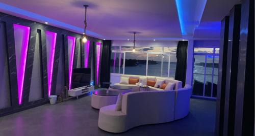 A 8-minute walk from Alhalmah Village Beach in Durat Alarous, شاليه درة العروس provides accommodations with access to a public bath. This beachfront property offers access to a patio and free private parking. The accommodation offers an elevator and full-day security for guests. Offering a balcony and sea views, the spacious vacation home includes 4 bedrooms, a living room, satellite flat-screen TV, an equipped kitchen, and 3 bathrooms with a bidet and a bath. Featuring air conditioning, the vacation home lets you use Xbox One, PS2, and game console. For added privacy, the accommodation has a private entrance and soundproofing. For guests with children, the vacation home features a children's playground. A water park is available on-site, and both fishing and hiking can be enjoyed close to شاليه درة العروس. King Abdullah Sports City is 27 miles from the accommodation. King Abdulaziz International Airport is 37 miles away.