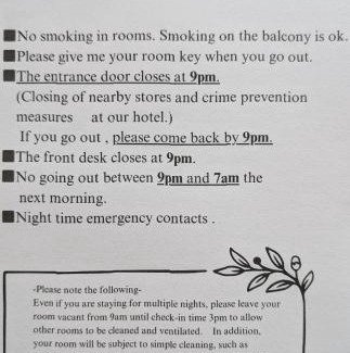 Based on the information reported by the owner or manager, the プチホテル MASUYA indicates 1 day stay policy at this hotel. Guests are cautioned that the minimum stay policy may differ based on seasonality or availability and may be at the discretion of the owner or manager.