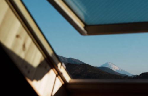 - A house with a hearth surrounded by Mt. Fuji and Yatsugatake.