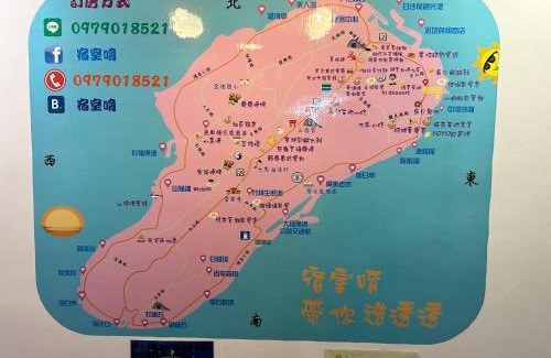 宿室唷 features air-conditioned accommodations in Xiaoliuqiu. Both free Wifi and parking on-site are accessible at the homestay free of charge. The accommodation provides luggage storage space and bicycle parking for guests. 宿室唷 offers a flat-screen TV and a private bathroom with slippers, a hair dryer, and shower. The homestay offers some units with sea views, and units include a kettle. At the homestay, the units have bed linen and towels. Guests can also relax on the sun terrace. Zhongao Beach is a 9-minute walk from the accommodation, while Meiren Beach is one mile from the property.