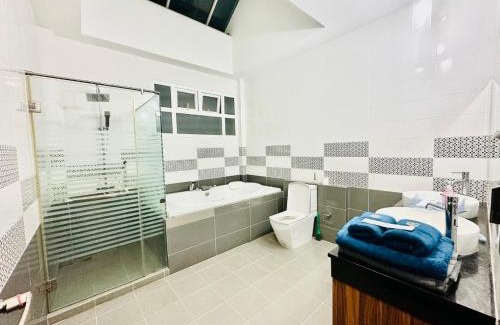 16 miles from Eastern Star Golf Course in Ban Bung, 木林民宿 provides accommodations with access to a hot tub. This property offers a private pool, free Wifi, and free private parking. Outdoor seating is also available at the villa. Providing a terrace and inner courtyard views, the spacious villa includes 3 bedrooms, a living room, cable TV, an equipped kitchen, and 2 bathrooms with a hot tub and a bath. The accommodation is non-smoking. A car rental service is available at 木林民宿. Emerald Golf Resort is 19 miles from the accommodation, while Phoenix Gold Golf and Country Club is 3.2 miles away. U-Tapao Rayong-Pattaya International Airport is 15 miles from the property.