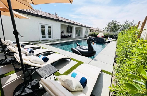 - Outdoor Oasis: Enjoy the luxurious pool and oversized spa, perfect for relaxation after wedding festivities, as well as an outdoor dining area that can accommodate celebrations under the California sun.
