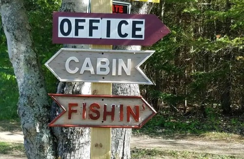 Set back away from the road this cozy cabin sleeps 4, has a queen bed and a sofa with a queen pull-out bed. Bathroom with a shower, toilet, and sink inside the cabin with linens, toilet paper, shampoo, conditioner, and soap. In addition, it has a kitchenette with a 2 burner stove, sink and mini-fridge, microwave, coffee maker, toaster, mini-fridge, dishes, glass, silverware, cookware, coffee, sugar, creamers, salt, and pepper. livingroom/kitchen area, table, 2 TVs, 2 DVD players, front porch, picnic table, and BBQ with utensils. Trails to hike, pond to fish, kayaks and paddleboats, Close to ATV trails and direct access to Snowmobile trails access and a campstore.