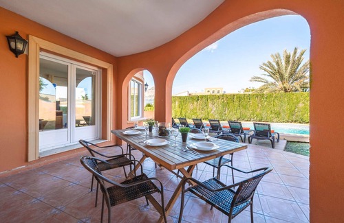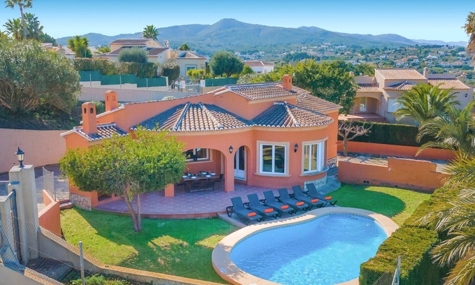 Boasting lovely views over to the Montgo mountain, villa Pomelo is ideally located within a 10 minute walk to a small choice of restaurants. Perfectly located for enjoying the nearby resort of Javea and around a 10 minute drive from the Old Town, as well as the renowned Arenal beach and promenade which has a fantastic choice of restaurants and shops on offer. Built in a traditional style, Pomelo benefits from a curved lounge laced with windows that look out over the pool and create a light and airy living space. Outside, a covered terrace allows for alfresco dining complete with built-in barbecue for relaxed family evenings, overlooking the garden and private pool.With wifi and air conditioning/heating in the bedrooms and lounge.