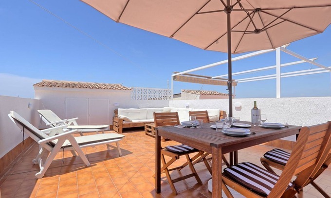 Nice apartment located in Urb. Altomar II in Gran Alacant with a large terrace on the solarium, equipped with garden furniture and barbecue to spend a pleasant stay in comfort. The house is on the first floor. It has two bedrooms, ideal for 4 guests. Three community pools in the urbanization. Parking space. There are close to restaurants, supermarkets, pharmacy and garden areas, but a car is recommended to go to the beach and shopping center. Tourist license nº VT-482349-A