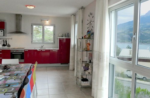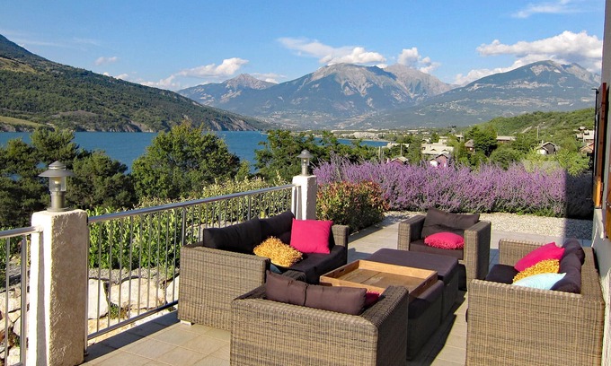 Villa Dalaromeri with fenced private pool and stunning views of the beautiful Lac de Serre Ponçon, the largest reservoir in Europe. The area is ideal for lovers of water sports (kayaking, water skiing and rafting), hikers (beautiful walks from the village of Savines-le-Lac) and cyclists. Here everything is within walking distance, the lake shore and several restaurants, three bakeries and a supermarket. The cozy Embrun (10 km) is within easy reach.