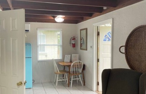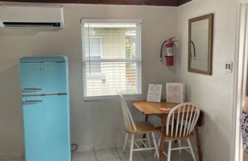 This private cottage gives you space to relax with a comfortable setting area and efficiency kitchen. The kitchenette is well equipped with tableware and utensils, refrigerator, coffee maker, toaster, microwave and a small dining area. There is a queen-size bed, ceiling fan, Roku TV and WI-FI. The bathroom has a shower. The cottage has the original wood ceilings. Breakfast and onsite dining are not available at this time. MId stay housekeeping is not available. Laundry facilities are free for guests with stays of 3 nights or longer. Pet(s) are allowed in the cottages for an additional cleaning fee. You are responsible for any damage caused by your pet(s). Please notify us if you are bringing pet(s).