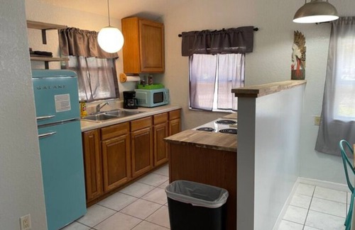 Marlin cottage has a separate bedroom and living area with a full kitchen. The bedroom has a two full size beds, living room, dining area and Roku TV. The kitchen is well equipped with tableware and utensils, refrigerator, coffee maker, and microwave, full size stove and oven. The bathroom has a large shower, Breakfast and onsite dining are not available at this time. Pet(s) are allowed in the cottages for an additional cleaning fee. You are responsible for any damage caused by your pet(s). Please notify us if you are bringing pet(s).