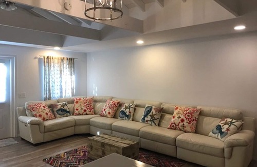 A total diamond in the rough! While the exterior is cute, the interior will blow you away! Newly renovated classy lake cabin only 1/4 mile to the boat launch and the beach! 1 private bedroom with a queen bed. Full size murphy bed in the main living area and a large sectional for extra sleeping if needed. Sleeps six comfortably. 1 Full bathroom. Large kitchen fully equipped with appliances including a dishwasher. Small patio out back with a gas grill and patio table and 4 chairs. Wash & dryer in the cabin Free WIFI and a new smart TV in the living room. Very quaint, cute lake cabin!