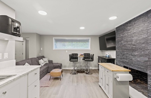 Completely newly renovated 1 KS bdrm + Full sofabed, 1 bthrm lower level walk-out w/70in TV & 1 off-street parking spot included. One additional for extra fee if needed.