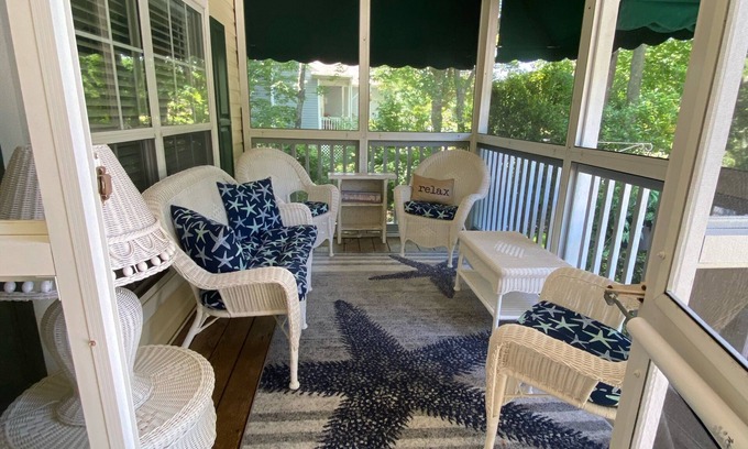 This includes a full kitchen, kitchen towels provided, Keurig coffee maker, central A/C, 3- ROKU TV's with Internet/WIFI only, screened porch for insect free evenings.