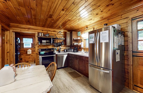 Inside, gather for conversation in front of the fireplace, or kick back in front of the TV to stream your favorite shows and movies. Stainless steel kitchen appliances are equipped to help you handle home cooking. There's also a gas grill for lakeside barbecues.