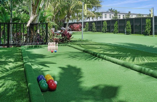 ✔ Recreational amenities include a volleyball court, a bocce court, mini golf, and bowling