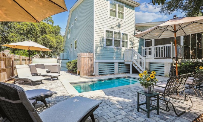 HOST & HOME presents…1 Azalea Street. Escape to our Hilton Head Island oasis, just a 0.5-mile shaded walk to Folly Field Beach. This pet-friendly retreat features a FREE heated pool and spa, spacious indoor and outdoor living areas, elegant design touches, and even an EV charger! Perfect for relaxation or adventure, this private getaway offers everything you need for an unforgettable stay. Learn more below ...