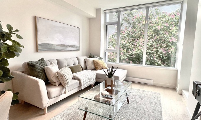 This south-facing 1-bedroom, 1-bathroom condo is on the 2nd floor with a view of the trees along Michigan St. The suite is filled with light and boasts a wide open living space perfect for a couple or individual on an extended stay. ** Unit can accommodate up to 3 ppl, but one or two is recommended. The option for the third person is the large sectional couch in the living room. Please note there is an additional charge for the third guest. **