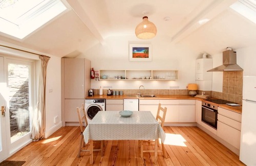 Apartment 4 has a lovely open plan Living room/ Kitchen. Skylights and large windows allow lots of daylight and a Wood Burner makes it cosy all year around. The kitchen is well equipped with good quality appliances including Lavazza coffee machine and Ruark radio.