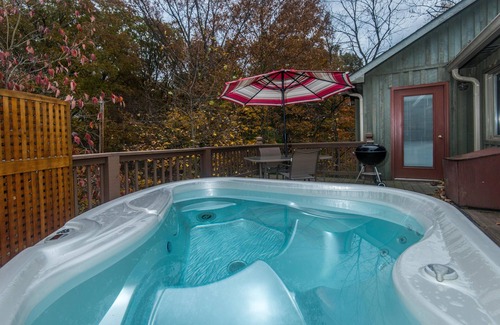 The outdoor dining table and charcoal grill on the deck offers options for dining al fresco. A small but nice hot tub makes the deck experience complete, as you and your mate engage in the daily unwind…country style.