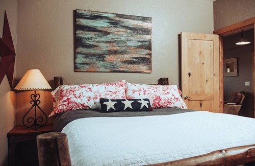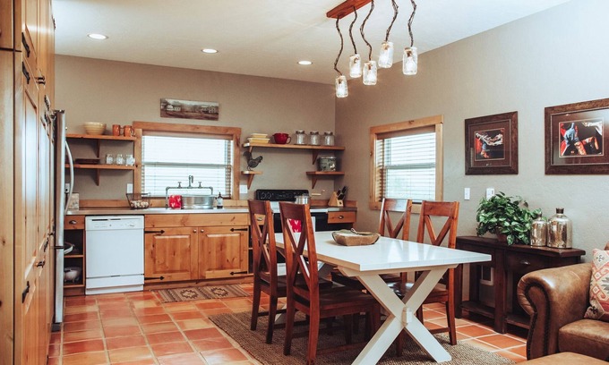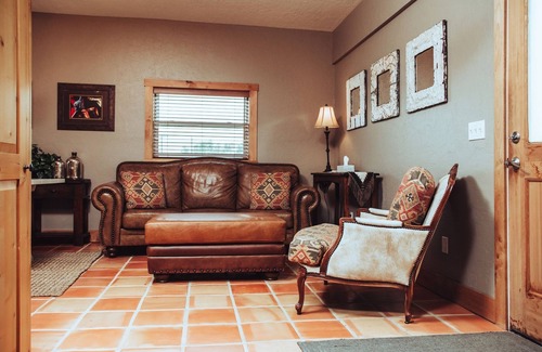As a working ranch, you'll be greeted at the gate when you arrive. Please let us know when you are 10 minutes away from the location, at arrival we will give you a clicker that will let you in and out of the gate! Feel free to explore our 70 acres of fully fenced land. We do have working animals on our authentic ranch, please be aware of the front gate and make sure it is closed at all times of arrivals and departures! If you would like our assistance with the gate at any time, please feel free to contact and we would be happy to help. Overall, just remember to kick off your boots at the door!