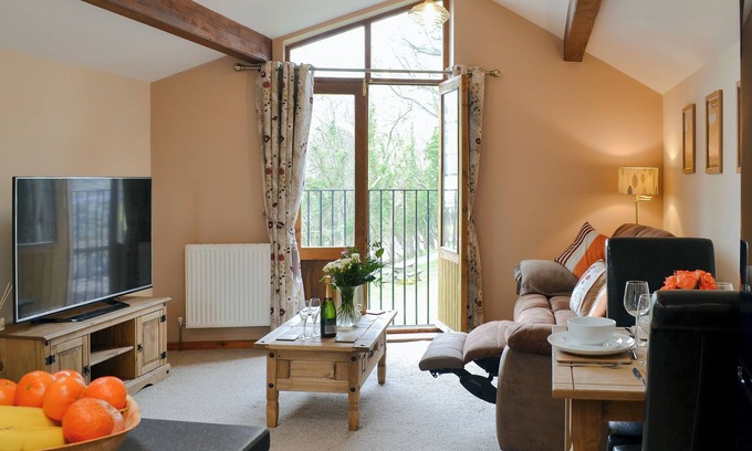 Kitchen area: Electric Oven, Electric Hob, Microwave, Air Fryer, Fridge/Freezer, Dishwasher. LPG central heating, electricity, bed linen, towels and Wi-Fi included. External utility room with washing machine and tumble dryer.. Courtyard with sitting-out area. Bike store. Private parking for 1 car. No smoking. Please note: No children under 12 months due to spiral stairs. There is direct access to the river.. Y Bwythn Pren, meaning wooden or timber cottage, is a delightful ‘upside down’ house set in the colourful Georgian harbour town of Aberaeron. Standing detached, the cottage is half timbered and arranged with the bedroom and bathroom on the ground floor. A quaint, spiral staircase takes you up to the first floor open-plan living space which takes advantage of the lovely view over the River Aeron. Open the doors to the Juliet balcony and listen to the sound of the water flowing down to the harbour and out to sea. Outside is a little courtyard where you can sit and there’s a bike store available and room to store canoes too as there is direct access to the river in front of the property. No doubt you will want to enjoy the delights of Aberaeron itself, which lies just a stone’s throw from this peaceful spot. Colourful buildings sit around the harbour, constructed in 1807, where boats bob about. There is an array of pubs, restaurants and cafés to suit all tastes and budgets, and a good variety of independent shops, many of which sell local produce and chic seaside gifts. The town is awash with festivals and unique events throughout the summer, so you can leave the car behind and enjoy the delights on offer such as a seafood festival, a cider and beer festival, a festival celebrating Welsh ponies and cobs, a mackerel festival, a carnival and more. In the winter, Aberaeron takes on a more sedate air, but you will find everything open for business and the pubs less crowded!