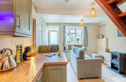 As you step through the door, you’ll be greeted by the cosy ambiance of the open-plan ground floor, where the fully equipped kitchen with a breakfast bar seamlessly flows into the comfortable living area. Sink into the plush sofa, curl up with a good book, or catch up on your favourite shows on the smart TV. The electric wood burner adds a touch of warmth and ambiance, perfect for those chilly evenings, while the window seat provides a charming spot to watch the world go by. Ascending the staircase to the first floor, you’ll find a spacious bedroom featuring a sumptuous super kingsize bed, which can be conveniently converted into twin beds if desired. The adjacent bathroom boasts a modern shower cubicle and a heated towel rail for added comfort. Outside, the cottage boasts a lovely, enclosed patio area to the front, complete with garden furniture, where you can enjoy your morning coffee or a glass of wine in the evening sun. Take in the tranquil surroundings and soak up the ambiance of this historic village.