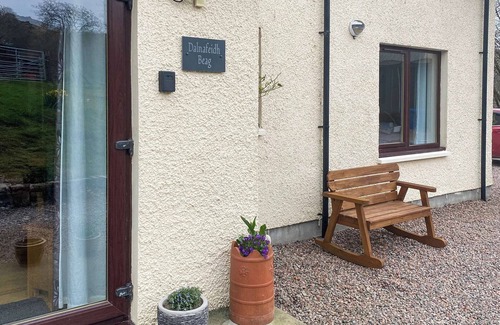 A beautifully finished, compact modern apartment in a rural croft setting in the coastal village of Appin, ideal for couples and close to stunning Glencoe and Ben Nevis.. 2 steps to entrance.