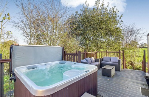 Entering into the open-plan living area, you will find a well-equipped kitchenette featuring an electric hob, microwave, and fridge. The living room has a sofa to relax on whilst enjoying watching the Smart TV, reading a good book or throwing open the French doors leading onto the decking area at the front of the property to admire your peaceful location. The bedroom boasts a double bed providing a cosy place to rest at the end of a busy day exploring. Outside there is a front decking area with patio furniture, perfect for sitting outside with breakfast or a cup of coffee in the mornings, or a chilled drink as you soak away your day in the private hot tub.