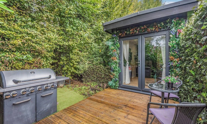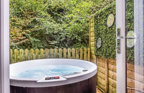 Shower Room: Cubicle Shower, Toilet. Electric central heating, electricity, bed linen and towels included. Travel cot. Welcome pack. Enclosed back garden with sitting out area, garden furniture and gas barbecue. Hot tub for 4 (private). Private parking for 1 car. No smoking. Please note: There are 2 steps in the garden.. The Retreat invites you to indulge in a luxurious escape amidst the serene ancient woodlands, just a short distance from Battle High Street, renowned for its pivotal role in the historic Battle of Hastings of 1066. Nestled in seclusion, this couples’ cabin offers a sanctuary with exclusive access to tranquil woodland walks, ideal for nature enthusiasts seeking respite.