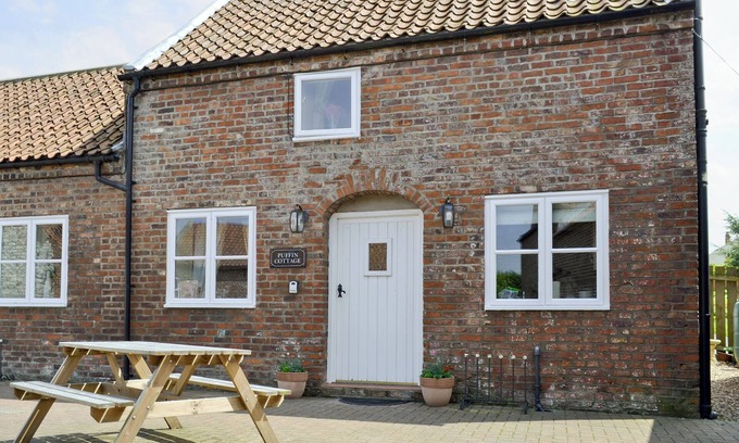 Bedroom: Kingsize (5ft) Bed Ensuite: Cubicle Shower, Heated Towel Rail, Toilet. Gas central heating, gas, electricity, bed linen, towels and Wi-Fi included. Travel cot, highchair and stairgate available on request. Welcome pack. . Patio with garden furniture. Shared garden with gas/charcoal BBQ, summerhouse and garden games. Bike store. Private parking for 2 cars. No smoking. Visit England 4 Star. Please note: There are 11 steps in the grounds to the shared gardens.. Puffin Cottage is a semi-detached barn conversion situated in the grounds of Manor Farm Cottages in the village of Buckton, close to the RSPB Bempton Cliffs Nature Reserve where you can see puffins, gannets and guillemots in their natural habitat. A bird watcher’s haven, home to more than 250,000 sea birds. You can walk to Bempton Cliffs from the cottages, or it is a 5-minute drive.