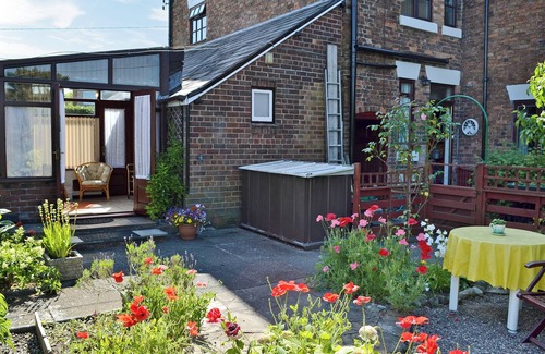 Ideal for couples or a small family, this spacious cottage in this pretty village is an ideal base for touring Cheshire and surrounds many attractions. There is an enclosed garden with table, chairs and a parasol.. 2 steps to entrance.