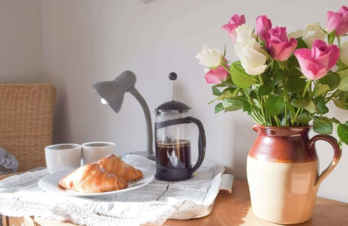 This charming annexe, attached to the owner’s home, offers guests lovingly furnished accommodation. All on the ground floor, there is living room with a cosy flame effect fire, perfect to relax infront of after a busy day, and the kitchen is equipped with everything you need to prepare a lovely home cooked meal. The master bedroom has been tastefully decorated, and the bathroom has a shower over bath. Outside, guests can enjoy their own private garden to sit and relax, and enjoy those picture postcard views.