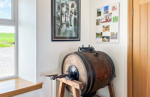 Bedroom: Double (4ft 6in) Bed Ensuite: Cubicle Shower, Toilet. Electric central heating, electricity, bed linen, towels and Wi-Fi included. Initial fuel for multi-fuel burner included. External garage: With washing machine (by prior arrangement). Front garden with patio, sitting out area and garden furniture. Private parking for 2 cars. No smoking.. Welcome to the Cheese Loft at Slockmill Farm nestled in the heart of Scotland’s most breathtaking countryside, the Cheese Loft offers a peaceful retreat with uninterrupted views over rolling farmland, rugged cliffs, and the vast Irish Sea beyond. Located just a few miles from the charming coastal village of Drummore, this cosy holiday let is the perfect base for you and your furry friend to explore the natural beauty and rich history of the Rhins of Galloway.