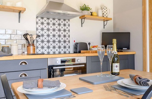 Shower Room: Cubicle Shower, Heated Towel Rail, Toilet. Underfloor air source heating, electricity, bed linen, towels and Wi-Fi included. Welcome pack. Front courtyard. Private parking for 2 cars. Electric car charging point. Please note: There are 3 steps in the garden. No smoking.. A perfect place to relax and unwind in luxury accommodation. The Hovel, once used as a shelter for the sheep in the surrounding fields, is now a stunning retreat for two. This barn conversion (completed in 2021) enjoys exposed beams, high ceilings and high-quality fixtures and fittings. The open plan kitchen, dining and living area has been thoughtfully designed and features a beautiful full-length window down one side and is well equipped with everything you need during your stay.