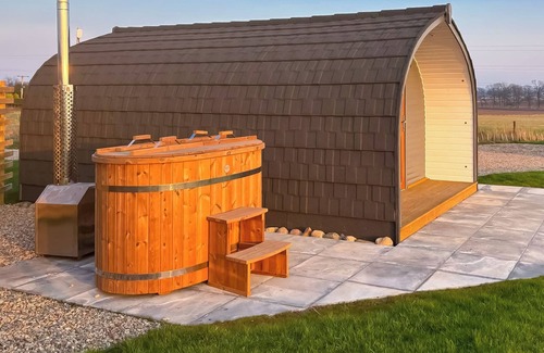Shower Room: Walk-In Shower, Toilet. Electric central heating, electricity, bed linen, towels and Wi-Fi included. Patio. Hot tub. Private parking for 2 cars. No smoking.. These two stunning holiday pods offer a truly immersive and unforgettable vacation experience. They are designed to provide the perfect blend of modern comfort and natural tranquility. Each pod is a self-contained, eco-friendly oasis, featuring a spacious living area, a well-equipped kitchenette, a cosy bedroom and a stylish bathroom. Floor-to-ceiling windows allow you to wake up to breathtaking views, creating an unparalleled sense of connection with nature.