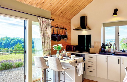 Bedroom: Kingsize (5ft) Bed Ensuite: Heated Towel Rail, Toilet. Electric central heating, electricity, bed linen, towels and Wi-Fi included. Welcome pack. Large garden with patio area. Private parking for 2 cars. No smoking.. Soak up the breath-taking views, relax and unwind or get out and explore – a walkers paradise with public footpath routes immediately from the doorstep. The location is a wildlife haven, home to buzzards, red kites, and more. It is great for stargazing at night as located in a low light pollution area. Aside from the perfect location and incredible views across the valley, Springhill Lodge offers guests a cosy open plan living, dining, and kitchen area. The double bedroom has been thoughtfully decorated to give you a calming feel alongside the shower room. Springhill Lodge is well-equipped and lovingly furnished and decorated by the owners to make you feel at home and ready to relax as soon as you arrive.