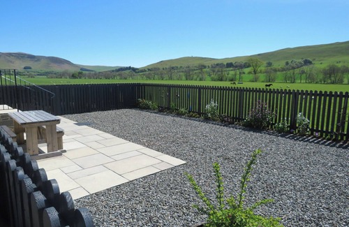 Shower Room: Walk-In Shower, Toilet. Ground source central heating, electricity, bed linen, towels and Wi-Fi included. Doggy extras.. Enclosed patio with garden furniture. Bike store. Private parking for 1 car. No smoking. Please note: This property has a natural water supply from a spring. There are 3 steps leading to the patio.. Set in the midst of fabulous rolling countryside with far reaching views over the surrounding hills, this comfortable, contemporary, semi-detached apartment is adjacent to the owners’ home. Single-storey, it is situated on the edge of a smallholding with sheep, midway between the picturesque market town of Biggar and the small village of Broughton, 3 miles away and home of Broughton Brewery and a tea room, doubling as a local pub at the weekend.