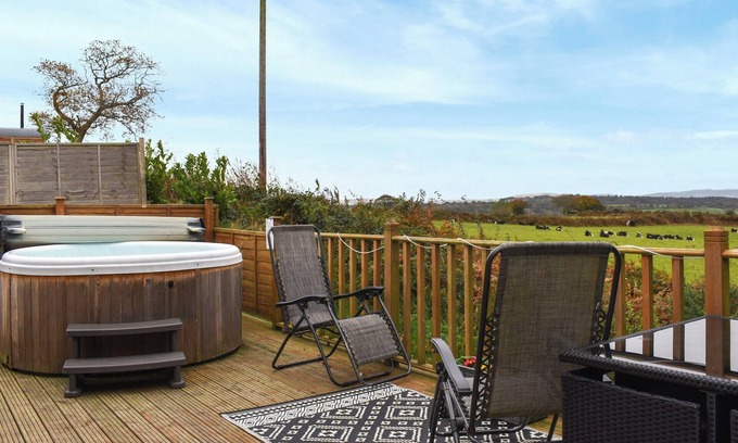 Shower Room: Cubicle Shower, Heated Towel Rail, Toilet. Electric central heating, electricity, bed linen, towels and Wi-Fi included. Travel cot and highchair. Welcome pack. Back garden with firepit, sitting-out area, garden furniture and barbecue (Gas). Grounds with sitting-out area and garden furniture. Children’s play area (shared with other properties on-site). Hot tub for 4 (private). Private parking for 1 car. No smoking.. Machlud Haul is a charming, cosy pod nestled within 115 acres of beautiful farmland. This peaceful retreat offers an intimate escape, perfect for couples and families seeking relaxation and connection with nature. The pod is equipped with all the essentials for a comfortable stay. One of the standout features is your private hot tub, where you can unwind and soak under the stars while taking in the tranquil surroundings of the rolling countryside.