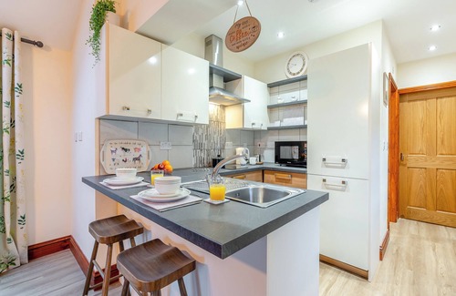 The cottage itself, crafted from sandstone and adorned with pan-tiled roofing, boasts a private enclosed garden that beckons for relaxation and al fresco dining. Adjacent to this tranquil space lies a communal orchard, providing a serene environment for leisurely strolls and a play area for your four-legged friend. Stepping over the threshold, you’re greeted by an open plan living area adorned with glass doors that invite the natural beauty of the garden inside. A wood burner becomes the heart of this space, infusing it with cosy warmth and an enchanting atmosphere, making it the perfect setting for romantic breaks with that special someone. The well-appointed kitchen area is thoughtfully designed for creating intimate meals for two. The double bedroom exudes comfort and style, ensuring a peaceful night’s rest, while a modern walk-in shower completes the cottage’s amenities.