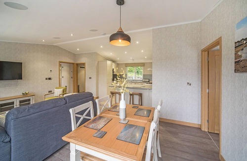 New in 2018. A stylish and contemporary style lodge with one double with TV/DVD with walk in dressing room with en suite shower and bath, and one twin with en suite wet room. Central living space layout with an open kitchen/dining/living area. French doors leading out onto verandah with garden furniture. Perfect for a romantic escape, or family adventure.. Situated in a magnificent location and nestled amongst 55 acres of beautiful Pembrokeshire countryside, Llwyngwair Manor Holiday Park is the perfect place for coastal escapes, rural retreats and relaxing breaks with family and friends.