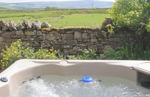 This pretty cottage boasts a large private hot tub situated in the rear garden with views of the surrounding countryside.. 1 step to entrance.