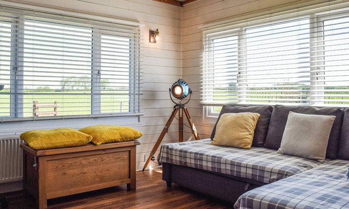 Shower Room: Cubicle Shower, Toilet. LPG central heating, electricity, bed linen, towels and Wi-Fi included. Initial fuel for wood burner included. Front garden with firepit, sitting-out area, barbecue and garden furniture. Private parking for 3 cars. No smoking.. Unwind in this peaceful, off-grid cabin nestled in the rolling countryside of Northamptonshire. Set on Elliotts’ Rectory Farm near the village of Moulton, the one-bedroom cabin is a comfortable and relaxing escape for up to four adults and two dogs. Surrounded by open fields and wildlife, it offers a perfect base for walkers and nature lovers. The bedroom features a super-king bed (or two singles), and the living area includes a king-sized sofa bed. An off-grid kitchen, eco-powered utilities, and an enclosed garden complete the setup, with thoughtful touches like locally made ceramics, artwork, and condiments to make your stay feel extra special. Step outside and you’re straight onto one of three public footpaths that cross the farm, leading to scenic walks past wildflower meadows and grazing sheep.