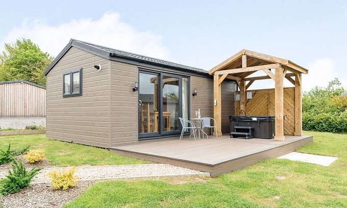 Cosy micro-lodge perfect for rural escapes with your four-legged friend. One double with TV and en-suite shower. Open plan lounge/diner with well equipped galley kitchen. Patio doors leading out onto decking with outdoor hot tub. . Steam Mill Lodges is part of our exclusive Bouja Luxury Boutique Breaks Collection. This stylish, adults-only location provides the ultimate retreat for romantic escapes, outdoor adventures or just kicking back and enjoying relaxation time.