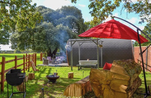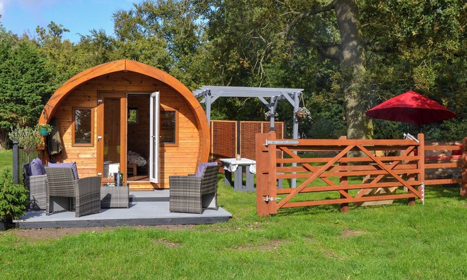 Overlooking acres of parkland, with big open skies and abundance of wildlife, this fantastic glamping pod includes noticeable little touches to make your stay an extra bit special.. 3 steps to entrance.