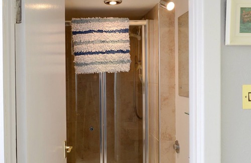 Original cottage doors open onto the hallway followed by feature stable doors leading into the living room where there is a large wood burner. There are two deep, comfortable sofas and lovely soft furnishings. The adjoining kitchen is well equipped with modern built-in units and a dining table for two. Steep cottage stairs lead up from the living room to the first floor landing. The double bedroom is attractively presented in a pretty cottage style and a bright, modern shower room completes the picture.