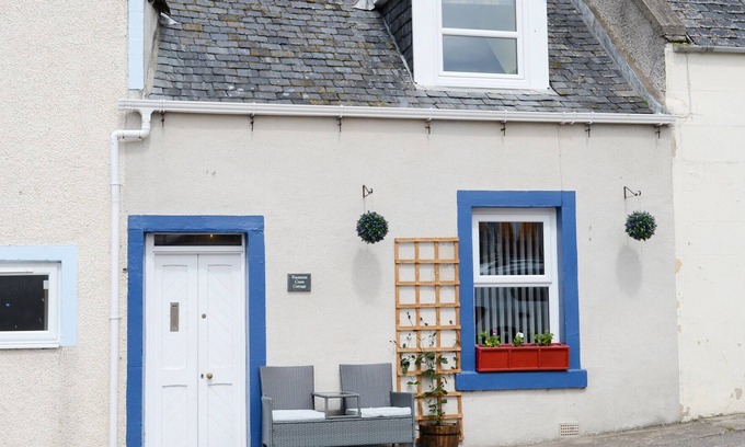 Shower room: With shower cubicle, toilet and heated towel rail.. Electric central heating, electricity, bed linen, towels and Wi-Fi included. Initial logs for wood burner included, remainder available locally.. Sitting-out area with garden furniture. Private parking for 1 car. No smoking.. Fountain Cross Cottage is a bijou terrace cottage situated on the seafront in the picturesque seaside village of Portmahomack. Just a few steps from the pretty, sandy beach and harbour, this attractive Victorian fisherman’s cottage provides a warm and welcoming base for couples and singles.